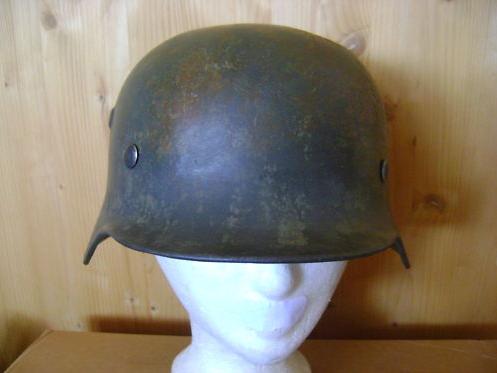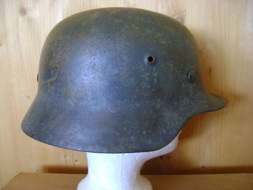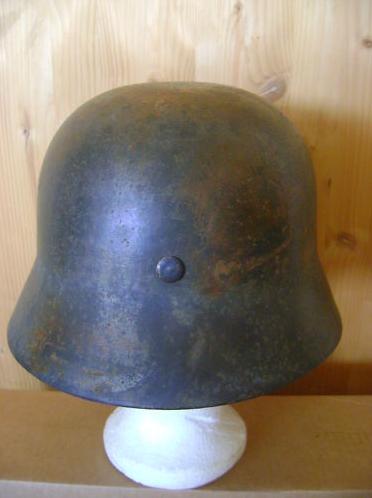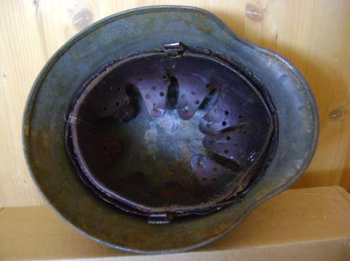 Прошу оценить немецкую каску М35. Чердачный сохран. Оригинальный окрас - около 80%. Клеймо "4345". В комплекте с оригинальным подшлемником, подшлемным кольцом и кламмерами. Размер по наружным кламмерам 67 см.
