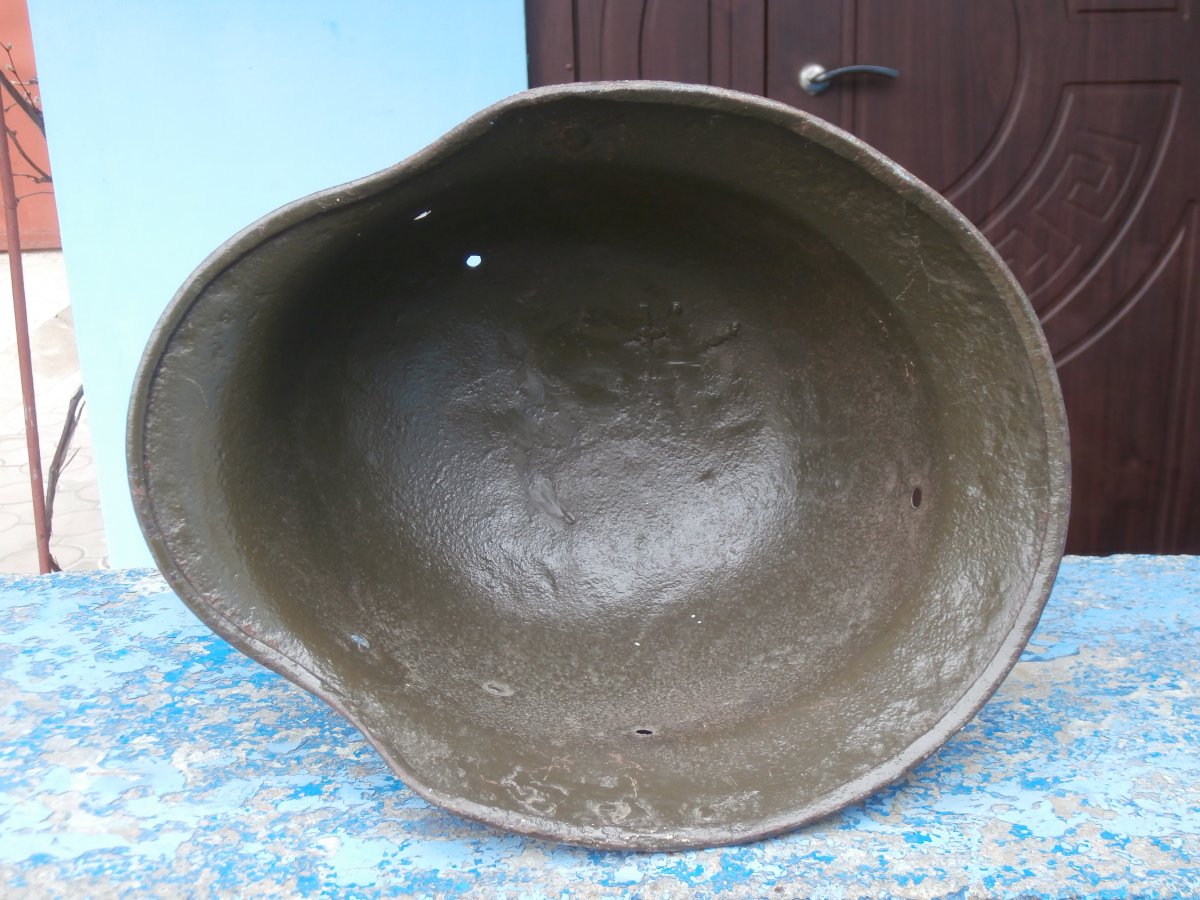 Добрый день . Прошу оценить каску. Какой то местный кулибин пытался немного реставрировать. Метал крепкий, предмет тяжёлый , всё на фото. С ув.