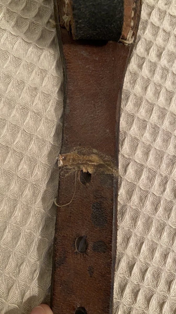 Господа, доброго времени суток. Подскажите по данной портупеи ориентировочную стоимость. Не могу утверждать, но похожа на оригинал. В одном месте есть дефект.