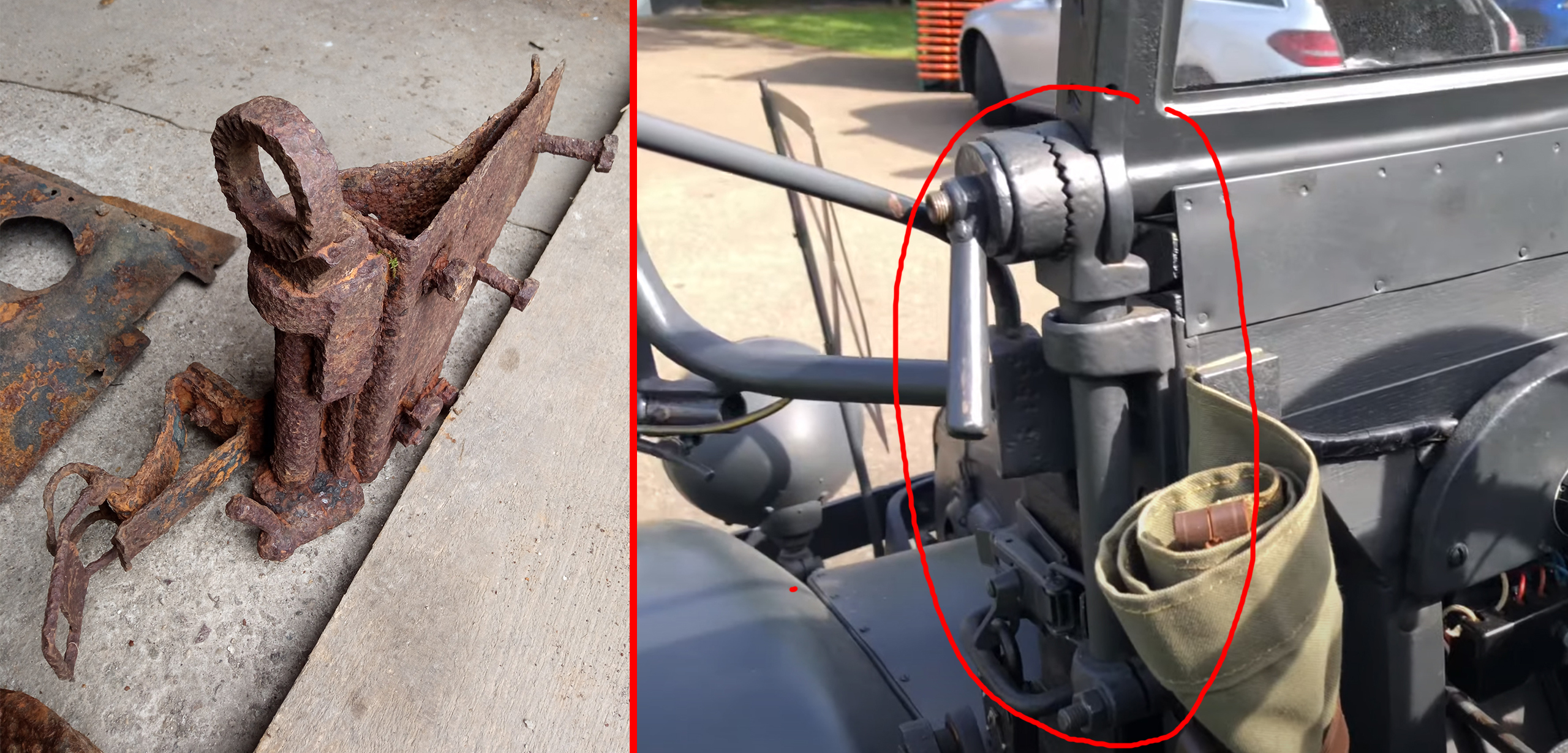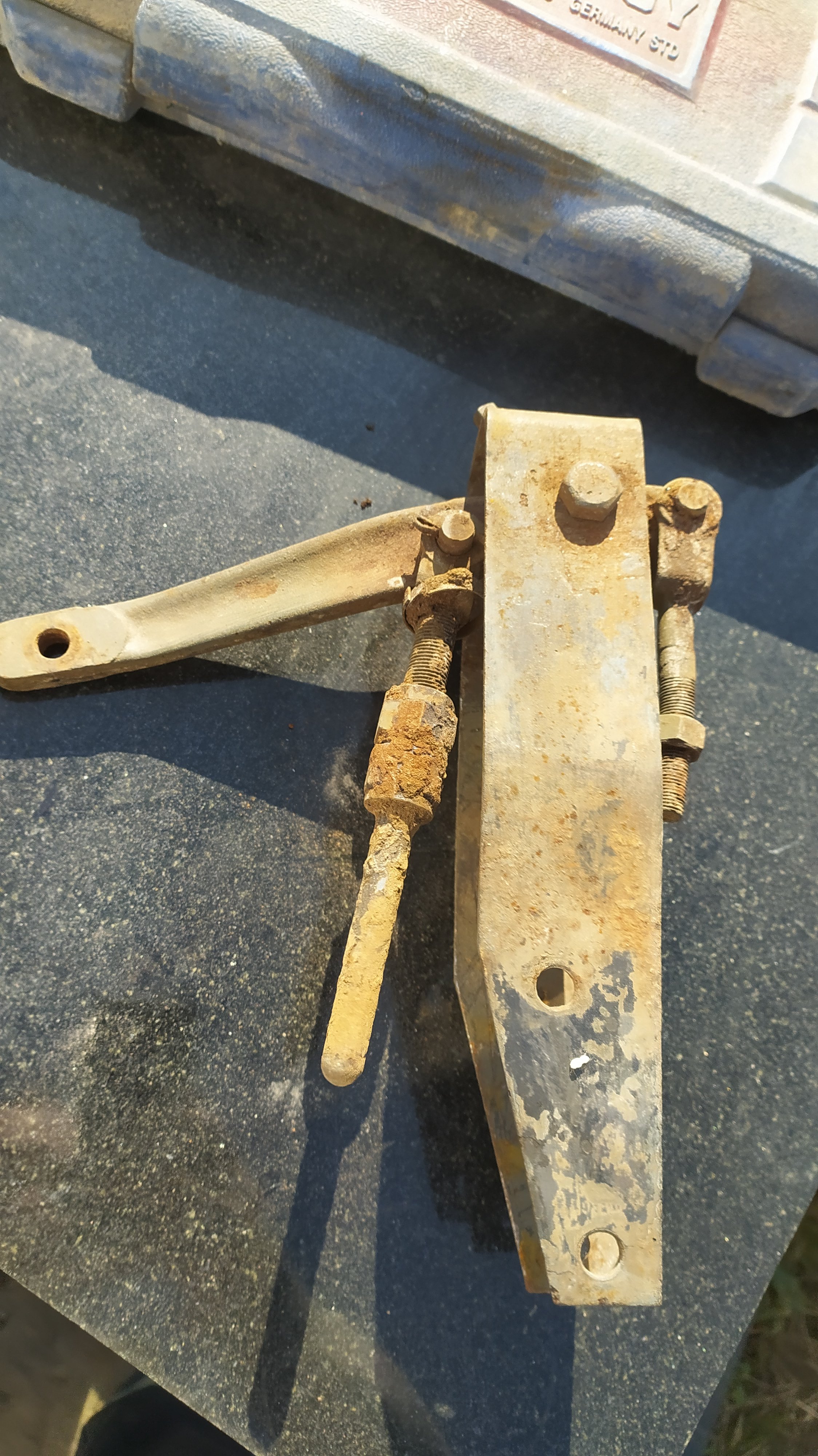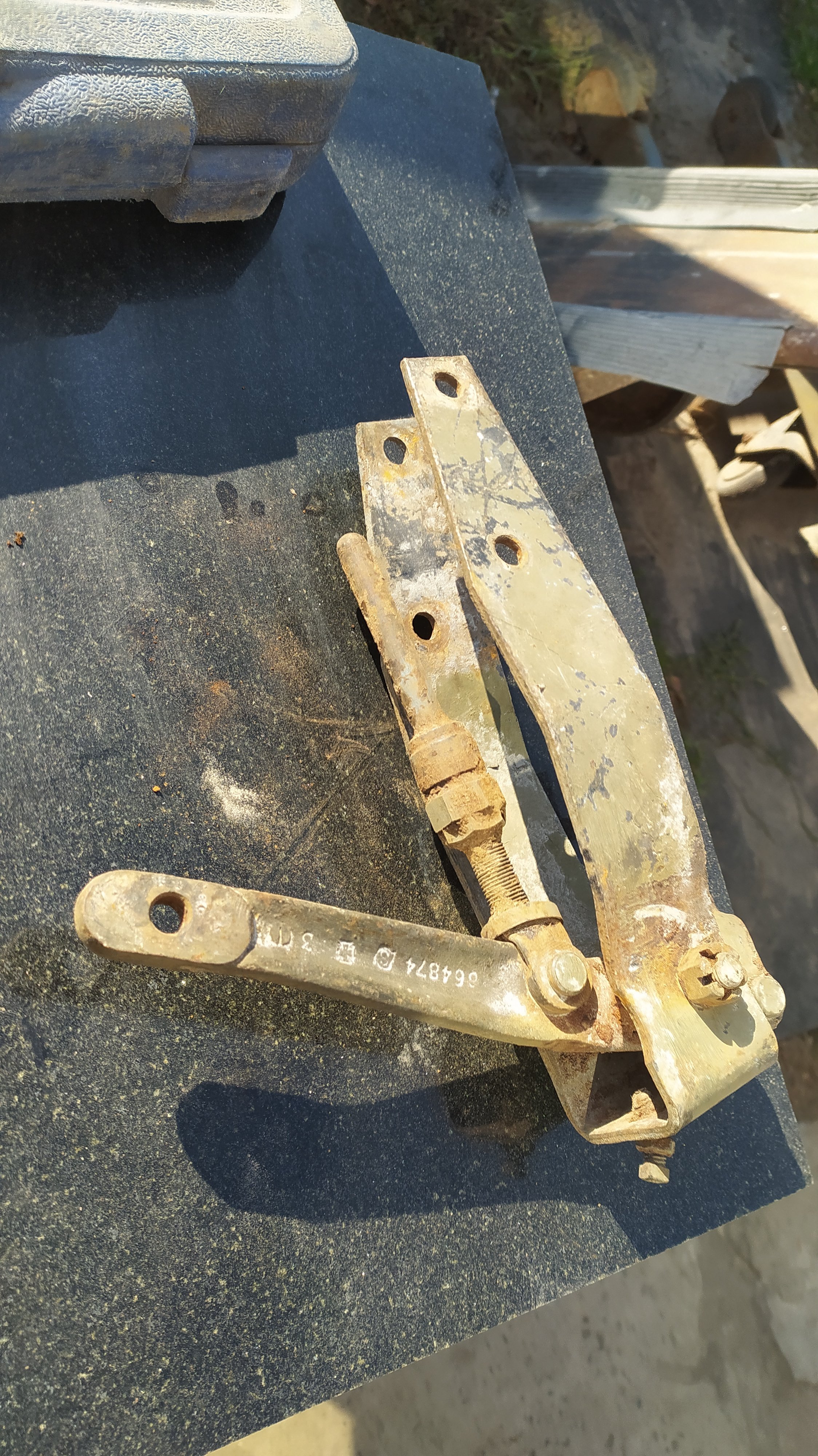 ...та что с зубчатым кронштейном - на ней стояло ветровое стекло автомобиля - зубчатка что бы складывать в горизонтальное положение...