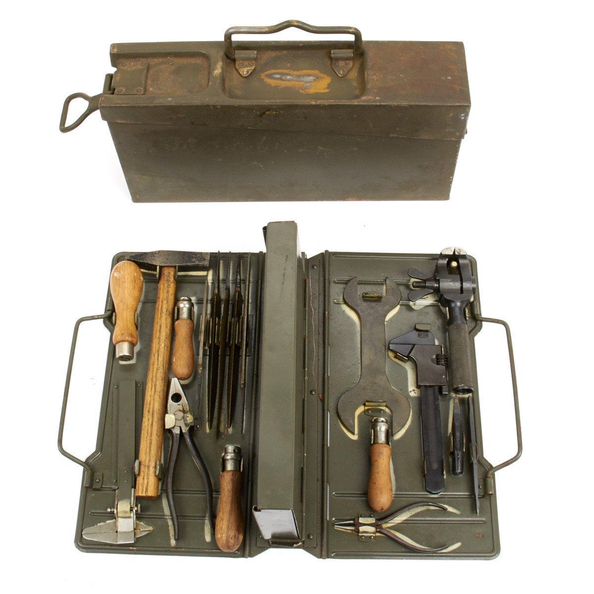 Ремонтный футляр MG для оружейника" В цьому виразі вам все зрозуміло? Розжую: Скриня, коробка, ящик з набоїв МГ для зберігання й перенесення ремонтного реманенту зброяря (інструмент, пристосування). Не кулеметного інструменту, а зброярський інструмент в ящику для набоїв МГ, не ФЛАК, не ПАК, а саме в коробці для набоїв МГ. Але набір зброяря, який обслуговує не тільки кулемети.