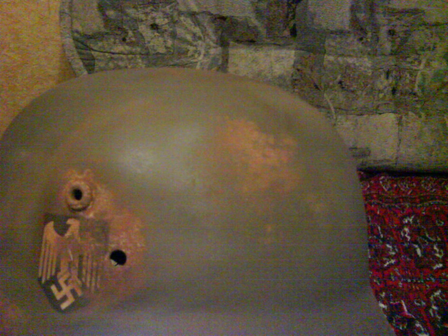 Это не совсем удачное фото в качестве сравнения. На нем все шлемаки модели М 40 - а цвет Люфтов в зависимости от модели тоже менялся (иногда довольно разительно !). Камрад Angry пишет что цвет "пляшет" в зависимости от освещения на разных фото - ну так может имеет смысл сделать адекватное фото - на улице в несолнечный день без вспышки - наиболее точно передает цвет. Вот мой копаный Люфт сфотканый подобным образом, обратите внимание на цвет....