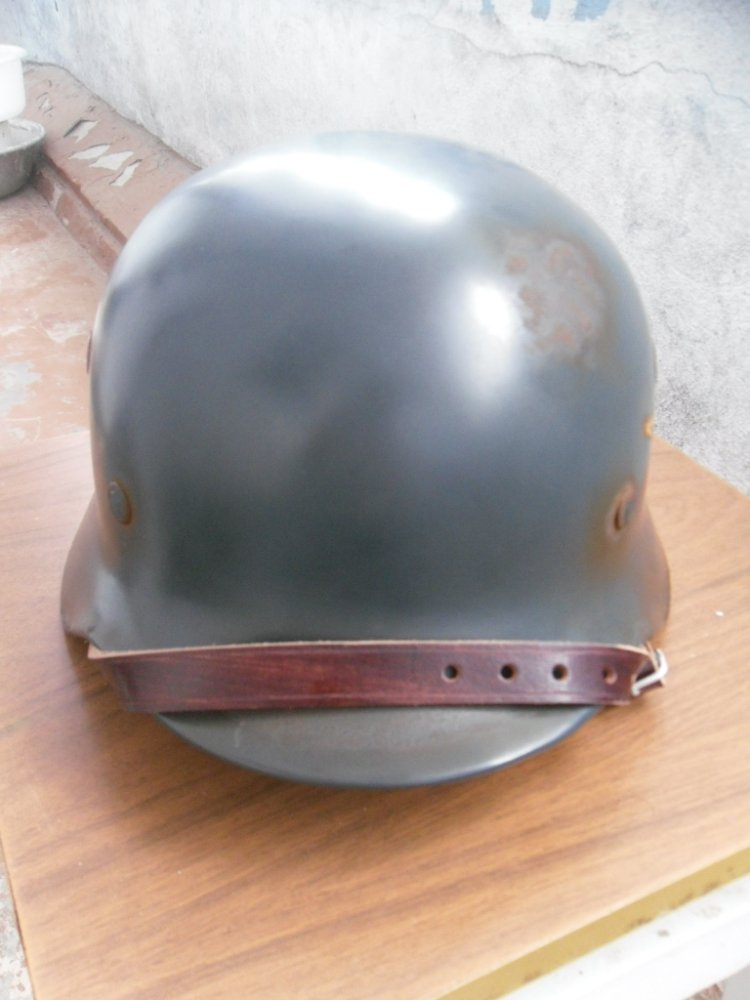 Дам и я пару советов- буду строгим ,но справедливым.Не стоило так сильно выводить поверхность-нет дефектов на метале,даже если чердак-должны быть следы войны,ржа неправдоподобная,декаль испорчена,подшлем формовать надо,с подбородочником тоже надо повозиться.На подбородочнике снимите торцы наждачкой,и натрите воском,помните в руках,порастягивайте-результат порадует.По покраске-я бы переделал,либо фронтовой перекрас с Ув.