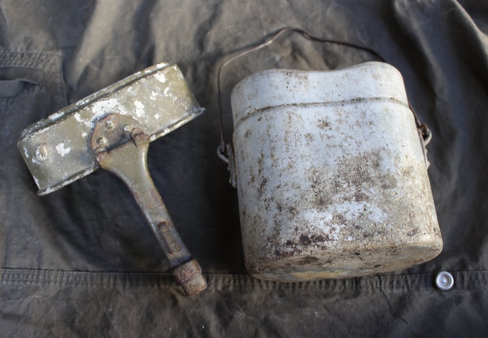 Продам немецкий котелок ,состояние по фото ,в крышке пулевое отверстие ,в самом котелке хранилась смола.Клейма разные.Цена 200 грв.