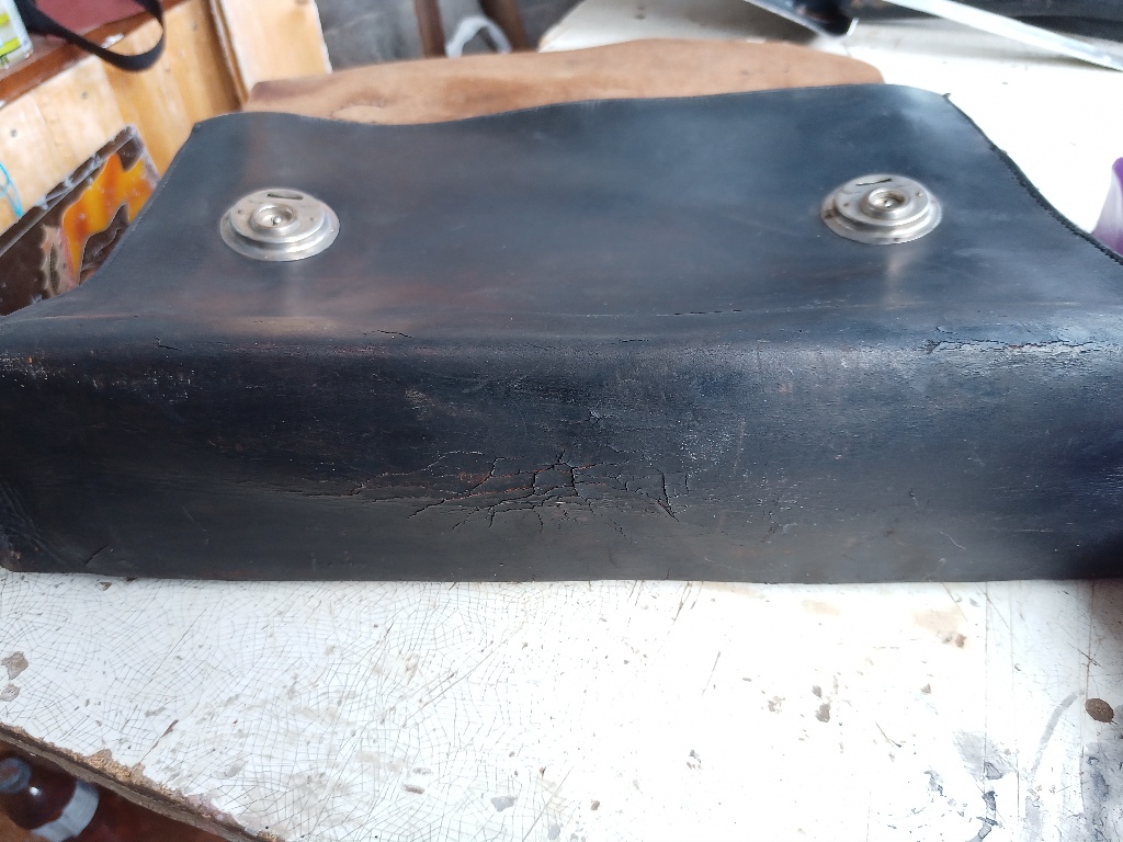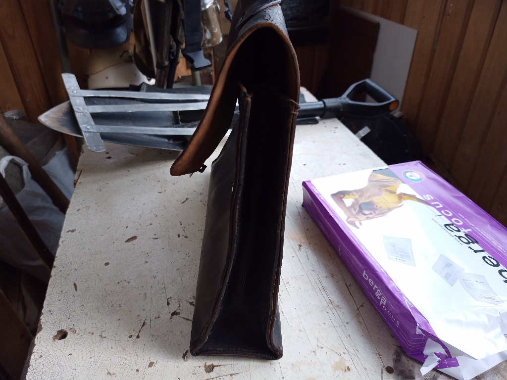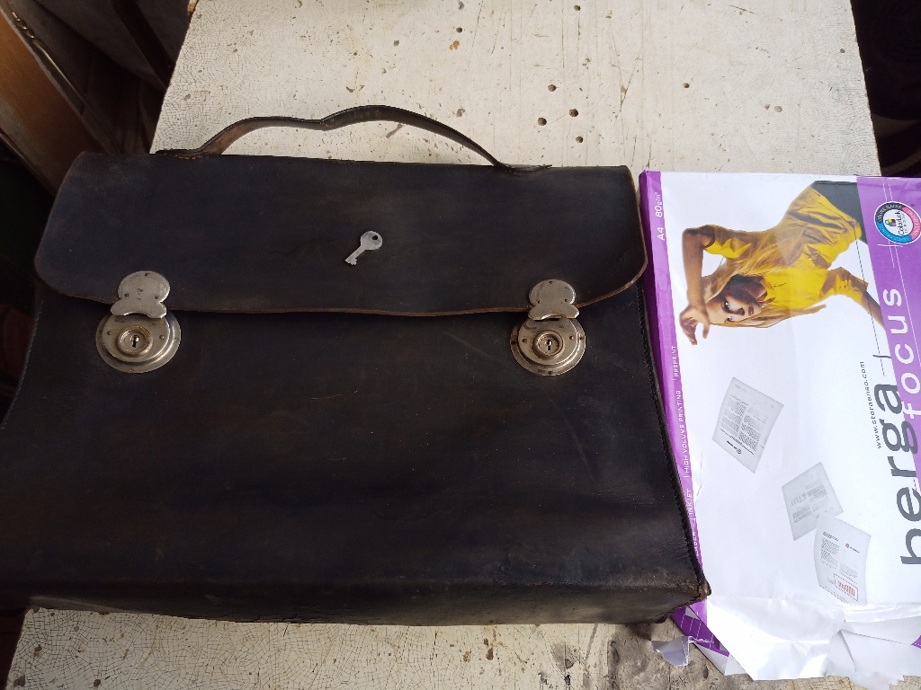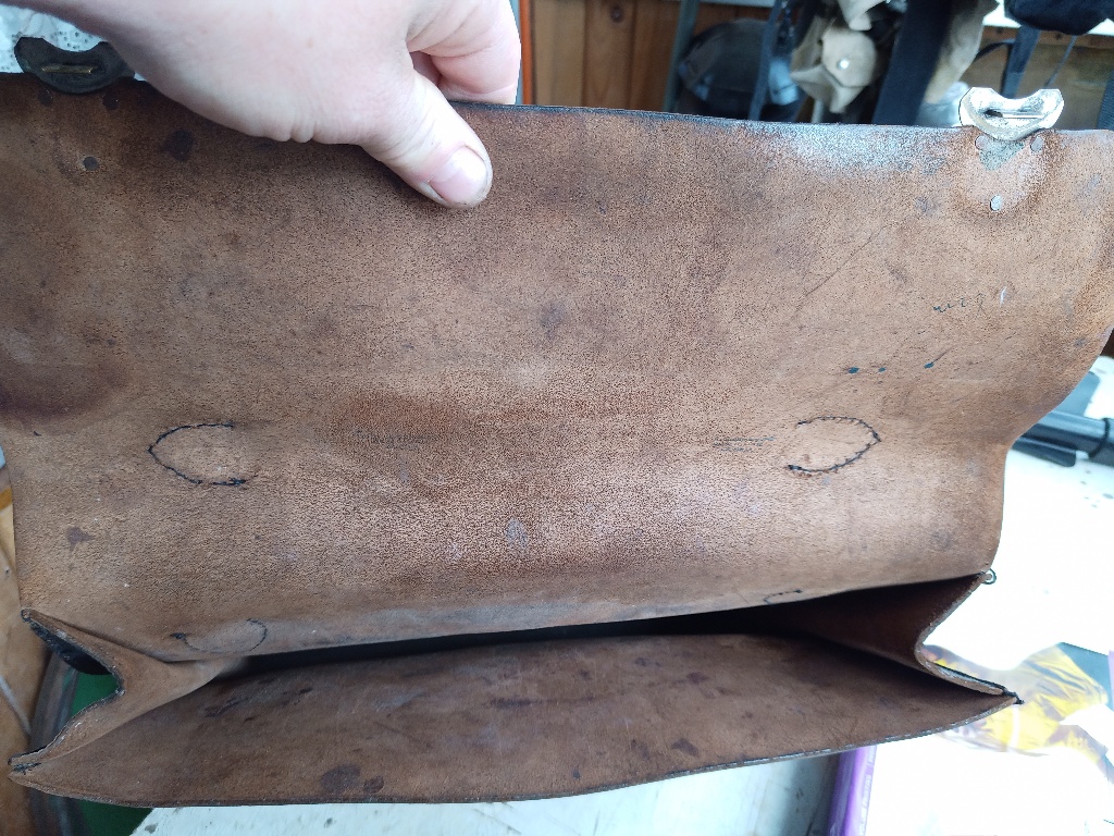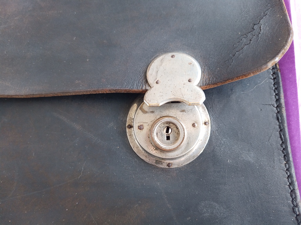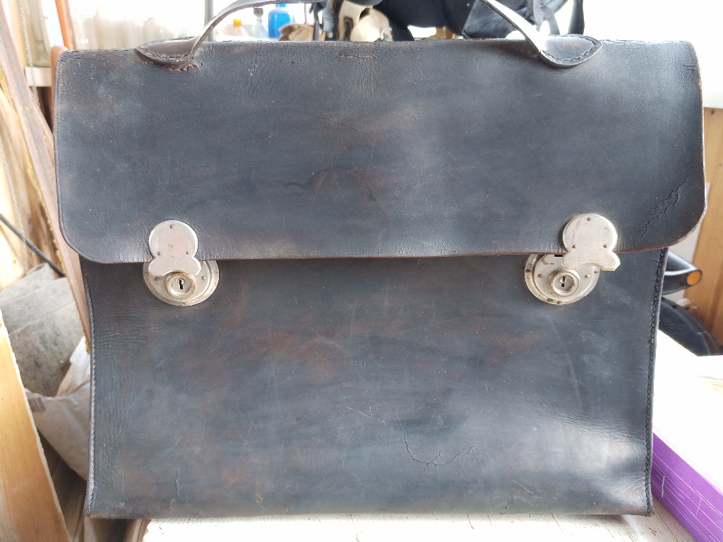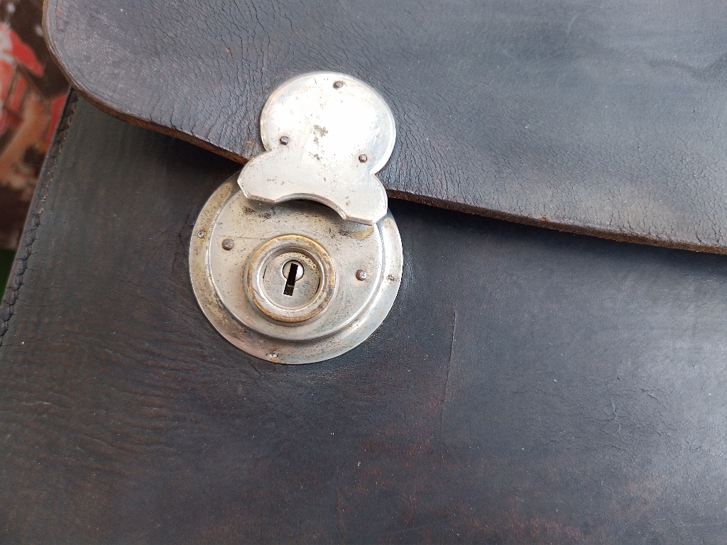 Помогите определить стоимость с целью продажи. История портфеля, был в семье со времён войны в одном из сел в районе Каховского водохранилища, забыл немецкий офицер при отступлении. Освежен краской по коже, аккуратно разобран замочек и изготовлен ключик, небыло хлястиков на задней стенке, пришиты новые по образу и подобию по старым отверстиям. Есть три штампа внутри на коже, непонятно клеймо хозяина или мастерской где изготовлялось. Видится фамилия, Берлин, и улица . Кожа более менее нормальная.