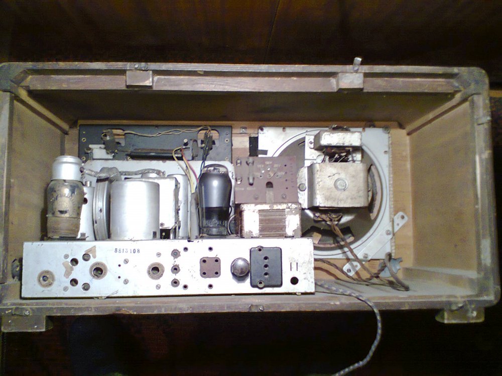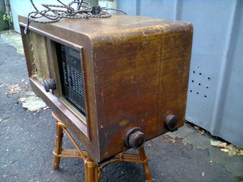 Немецкий комнатный радиоприёмник, внутри нехватает каких то ламп - не специалист в этой области, поэтому более конкретно ничего сказать не могу. Динамик имеет два прорыва, один из которых - заклеян. Цена 2450 гривен