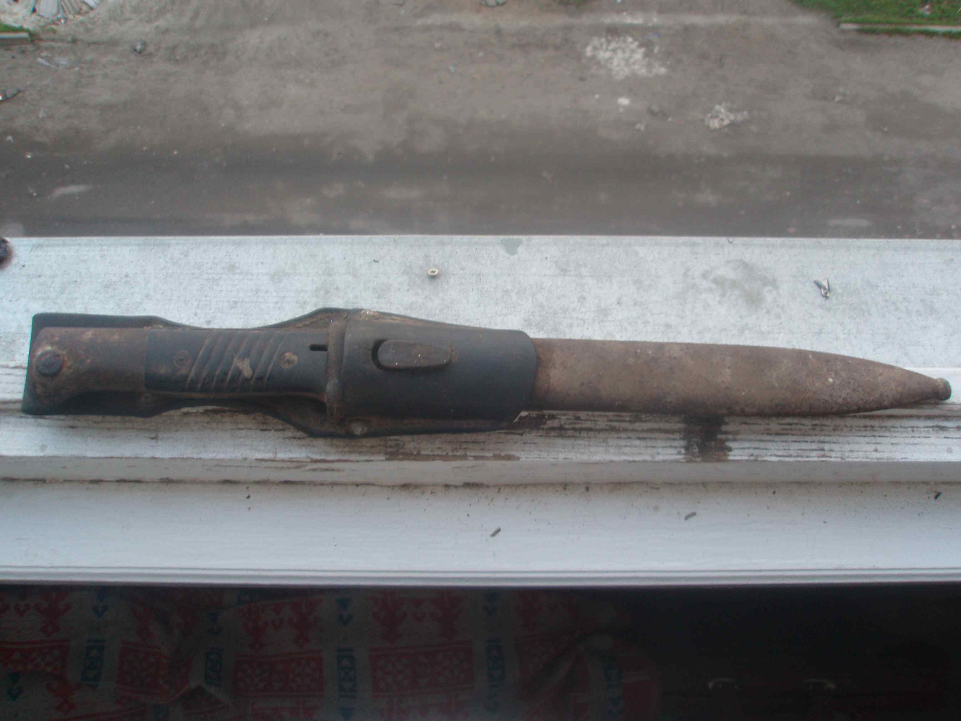 Ножны не прогнили, ржавчина поверхностная, воронение клинка родное без изьянов, немного точен но давно, и не наждаком (мож самим фрицом), кожа лопасти гибкая, ходить будет, при правильном подходе, мож на ржавых частях и родное воронение покажется. На навершии рукочтки уже два клейма приемки четких, но тонко пробитых обнаружилось. Почищу - вывешу фотки. Жаль, что кончик подгулял...