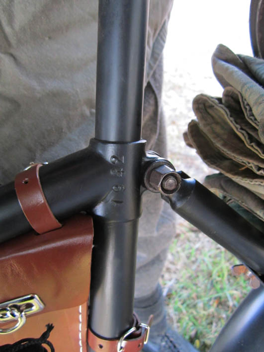 Казалось бы, велик да и велик, а сил положено не мало! Сейчас вы видите сиденье практически в идеальном состоянии, а стояло с лопнувшей пружиной, практически не пригодное к езде, в виде амортизатора был подложен дырявый баскетбольный мяч Как вспомню.....аж мурашки, по коже!!! Насос прикручен вверху проволокой, а внизу вставлен в крепление изготовленное из трубы раскладушки!