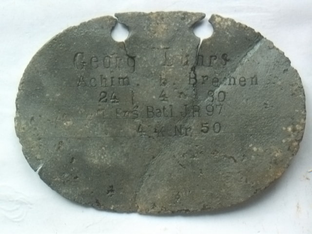 Жетон зразка 15 року. Ім'я, прізвище, місце народження Бремен, рік народження. Запасний батальйон 97 піхотного полку, 4 рота, порядковий номер 50.