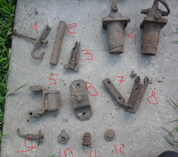 1-крюк тента зис 5 3-скоба тормозноя тяги зис 5 7-скоба тента полуторки 8-от петли борта полуторки 9-крюк капота полуторка ,газ 67