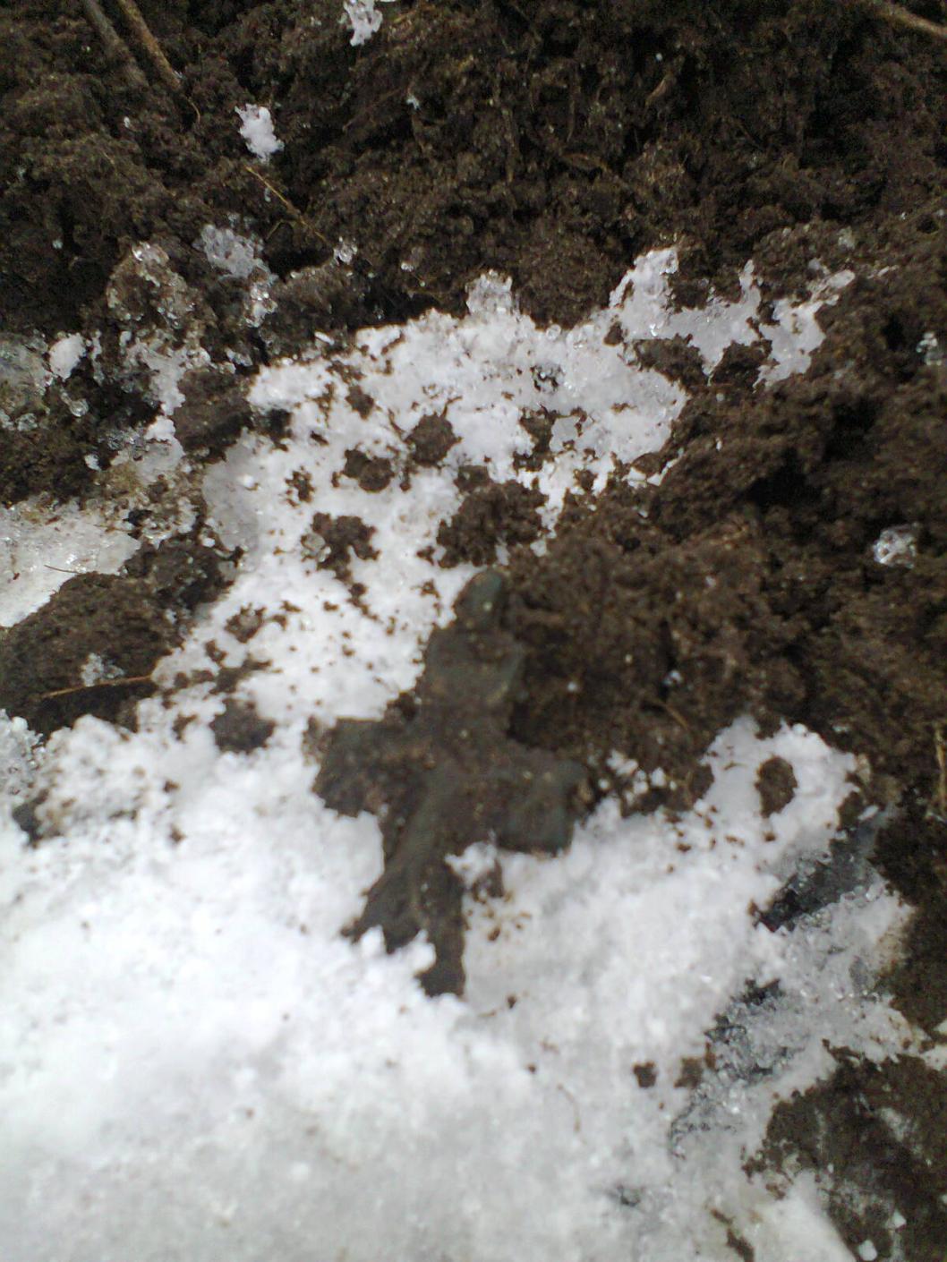 Второй день весны, а зима ни как не хочет сдавать свои позиции и держится до конца. Решили немножко покопать древности. Обилие «той что надо» керамики обрадовало. Копалась средневековая польская и царская медь, какой-то медальончик, гильзы да всякие бляшки… Решил отойти в сторону. Прямо под куском снега копнулся старый увесистый крестик. Солнышко потихоньку начало садиться за горизонт, пуская крайние лучики прямо нам в глаза - пора собираться домой. Денек оказался замечательный - улыбнулся, ведь сезон 2013 открыл удачно. С уважением GINDENBURG.