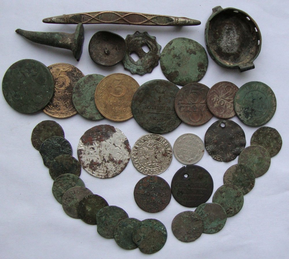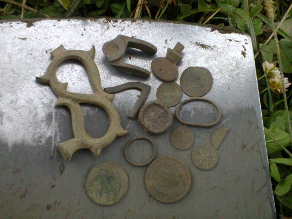 Откисли монетки с крайнего выхода. Собственно ничего особенного – но и не пусто… Улыбнул миниатюрный средневековый замочек и совковая детская ложка. C уважением, GINDENBURG.