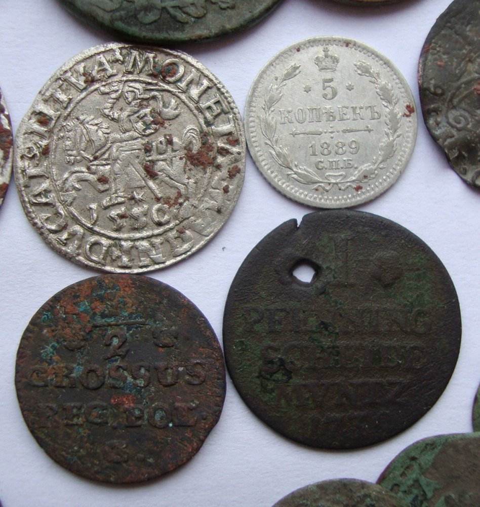 Большая серебряная монета оказалась пражским грошем, на котором я рассмотрел только две львиные лапы. Вторая монетка, хоть и подубитая но порадовала «орлом-мутантом». У него аж три лапы, в одной из которых меч. Это грош Сигизмунда I чеканеный в Пруссии на Торуньском монетном дворе в 1528-1535 г.г. Но порадовал все же гвоздик. Оловянистая бронза белого цвета. Или ЧК, или КР и уж никак не средневековье. Вроде ерундовая находка, но такие древние предметы как то больше «греют» мое сердце, чем боратинки. С уважением GINDENBURG.