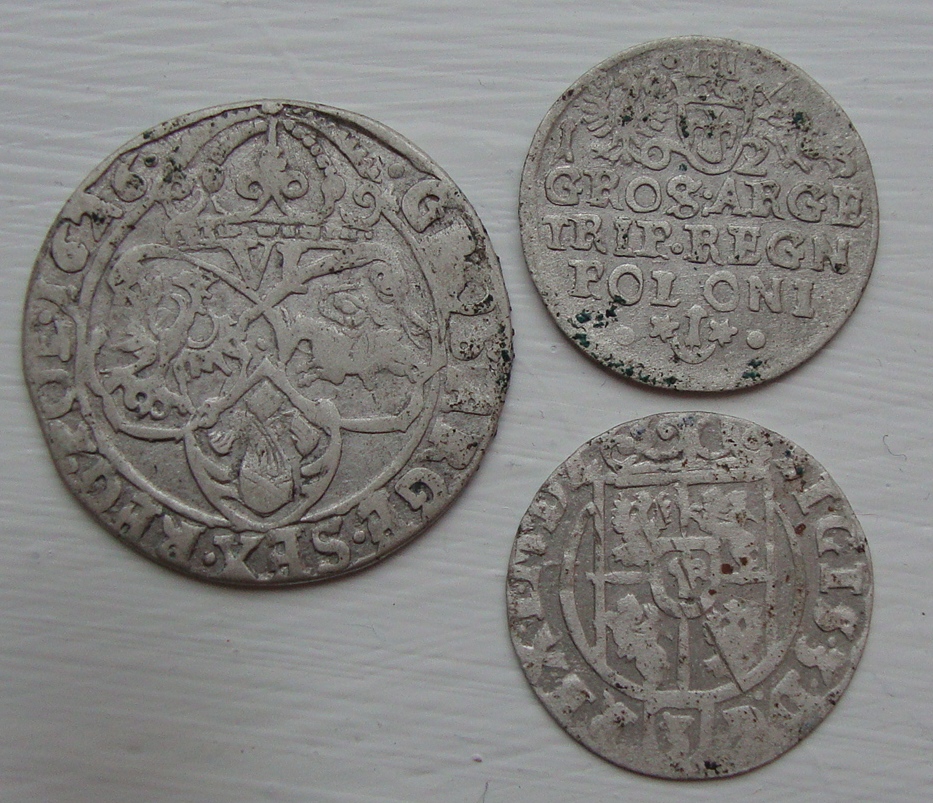 Среди сотни, а может и больше боратинок удалось "выудить" три серебряных монетки. Средневековое серебро всегда в радость. С уважением.