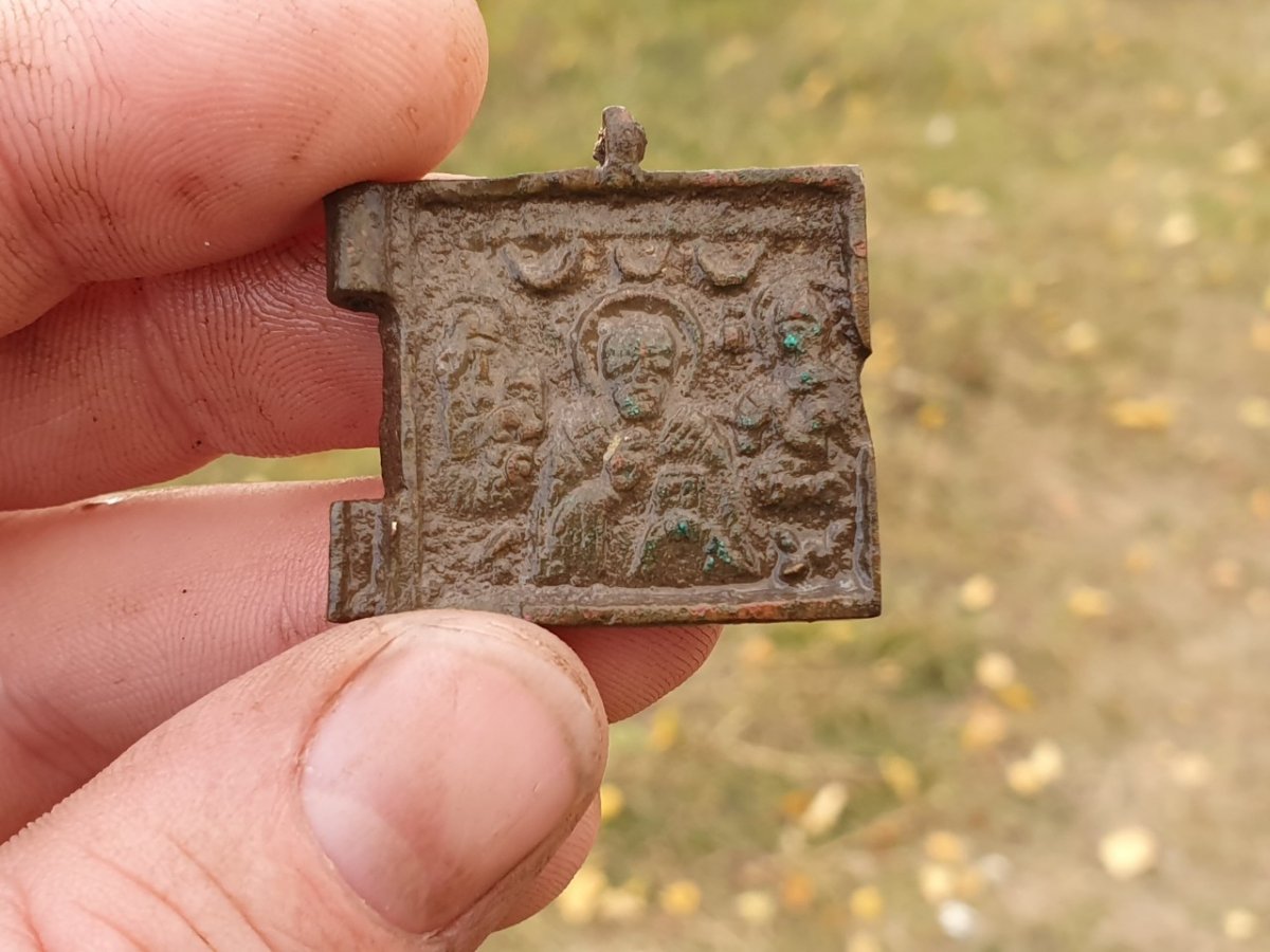 Добрый день, Помогите с датировкой половинки складня. Монеты с того места все второй половины 1700-х Но по виду складень кажется мне "постарше" Спасибо С уважением Саша.