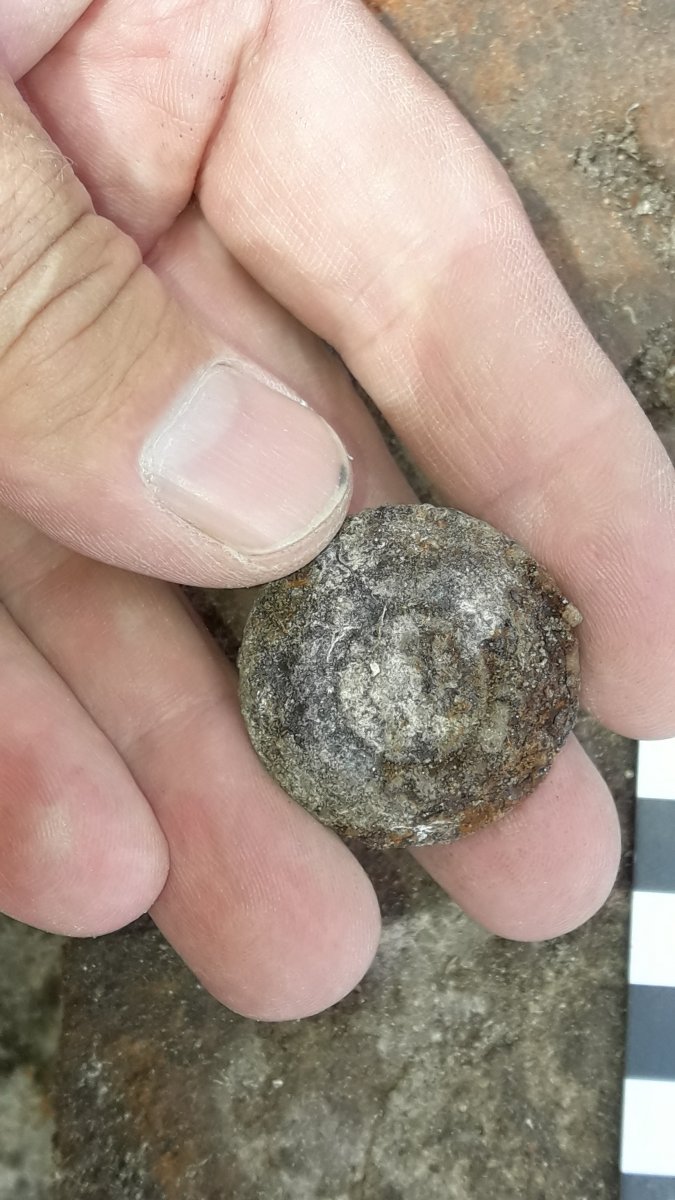 Странная пуговица(?) с двумя ушками найдена при земляных работах. Может это и не пуговица, а накладка? Похожее - накладка (подставка) на обложку старинной книги