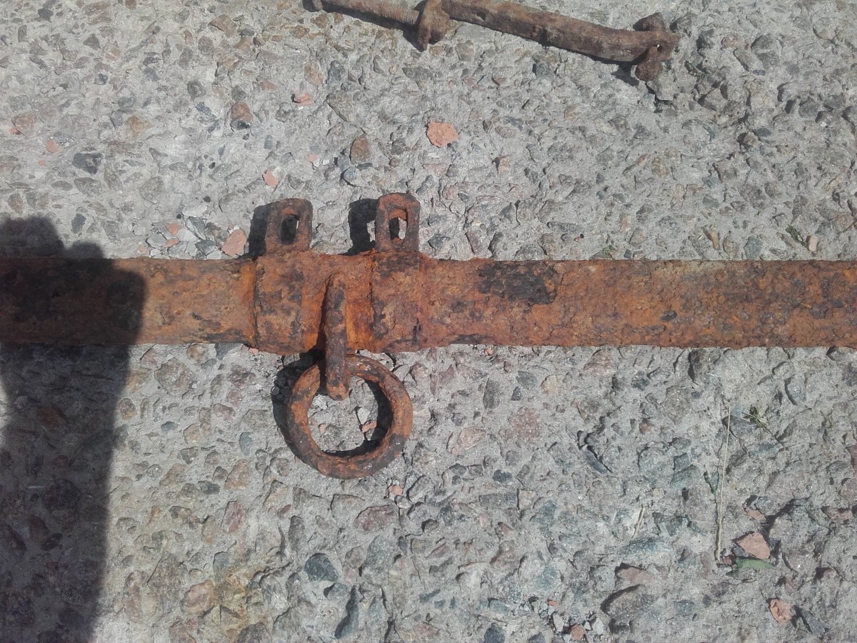 Вот среди чужих ям и котлованов попались деталюшки, судя по всему рвануло что то бронированное,был еще кусок ствола орудийного на вскидку не меньше 75мм. Еще встречались небольшие куски брони гдето 10мм толщины. И под конец попалась железяка вельми схожая на тележную? война?