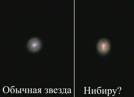 Сегодняшние фотки подозрительной звезды. Тучи разошлись и вот. На первой для сравнения слева обычная звезда из ковша, справа якобы Нибиру. Снимал в режиме цифрового зума-2000х и ночной съёмки. На второй для сравнения с местоположением Луны(на сегодня, уже пошла на убыль) в 23:00 в режиме усиления света в 16 раз. Луна сместилась при появлении больше вправо вверх, а эта звёздочка почти без изменений.