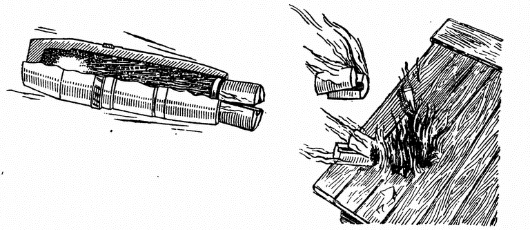 ".... К 1912 г. инженер Небучинов закончил разработку осветительных снарядов к 6-дюймовой гаубице и 8-дюймовой мортире, однако они не поступили на вооружение. В 1915 г., взяв за основу конструкцию Небучинова, полковник Погребняков предложил свои снаряды к полевым гаубицам, отработав их применительно к корпусам шрапнелей с выбросом снаряжения вперед. В 122-мм снаряде (длина снаряда — 3,2 клб, масса — 26,6 кг) размещались два факела в виде полуцилиндров со своими двойными парашютами, а в 152-мм — четыре факела в виде сегментов. Головная часть 122-мм осветительного снаряда соединялась с корпусом нарезкой и стопорными винтами. В корпусе снаряда находились два факела, по выемке между ними проходила центральная трубка, вокруг которой были установлены резиновые прокладки-кольца, а внутри трубки помещена нить стопина, выполняющая функцию огнепровода. Нижняя часть трубки соприкасалась с втулкой, в которой был запрессован пороховой замедлитель. Втулка ввинчивалась в диафрагму. Вышибной заряд (навеска из дымного пороха) находился в металлической коробке, соединенной с диафрагмой. Факел общей массой 550 г представлял собой железный корпус, в который был запрессован основной осветительный состав (нитрат бария — 72%; алюминий в порошке — 18%; алюминий в пудре — 5%; олифа натуральная — 5%), а также слои предохранительного и воспламенительного (основного состава — 25%; пороховой мякоти — 75%; при цементаторе — натуральной олифе 3% — сверх 100%) составов. Нитрат бария, или азотнокислый барий, Ba(NO3)2здесь использовался в качестве окислителя, содержащего 30,6% активного (вступающего во взаимодействие с горючим алюминием) кислорода. Олифа применялась для склеивания осветительного состава. После высыхания осветительный состав представлял собой прочную монолитную массу, труднораздавливаемую и неспособную крошиться. Факелы располагались над сложенными парашютами и опирались на дубовые стойки с резиновыми прокладками. Деревянные стойки служили для защиты шелковых парашютов от повреждений и смятия их факелами. Резиновые прокладки обеспечивали смягчение удара факелов в момент выстрела. Для пояснения принципа действия осветительного снаряда Погребнякова используем иллюстрацию из книги «Артиллерия» (ГВИ Наркомата обороны Союза ССР, 1938 г.). После выстрела в определенной точке траектории происходило срабатывание дистанционного взрывателя и формировался пороховой импульс в виде форса огня, который передавался на стопин, а от него — на воспламенительные составы факелов и пороховой замедлитель. Во время горения замедлителя осветительные составы факелов успевали разгореться настолько, что не затухали в момент разрыва снаряда. После сгорания замедлителя воспламенялся вышибной заряд и образовавшиеся пороховые газы выбрасывали укладки из корпуса через головную часть. Парашюты раскрывались и поддерживали в воздухе горящие белым цветом факелы. В случае отказа одного парашюта действовал другой. Следует заметить, что снаряд конструкции Погребнякова по сравнению с представленными ранее снарядами фирмы «Крупп» по простоте устройства был, несомненно, лучше, хотя и имел свои слабые стороны. Так, крепление головной части к корпусу снаряда оказалось недостаточно прочным: оно обеспечивалось приблизительно полутора витками нарезки, что, по мнению разработчиков, было дос
