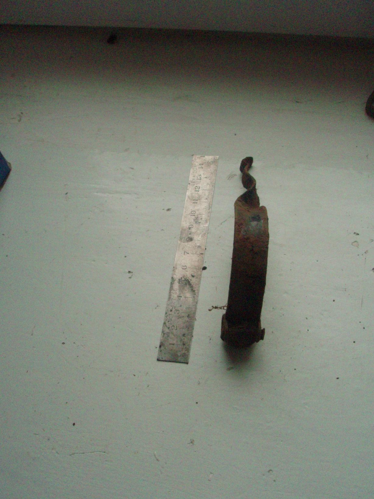 Что бы не плодить темы, добавлю ещё одну деталь - похоже на какую-то ручку, сверху - две точки точечной сварки, снизу - одна. Остатки какой-то синей эмали.