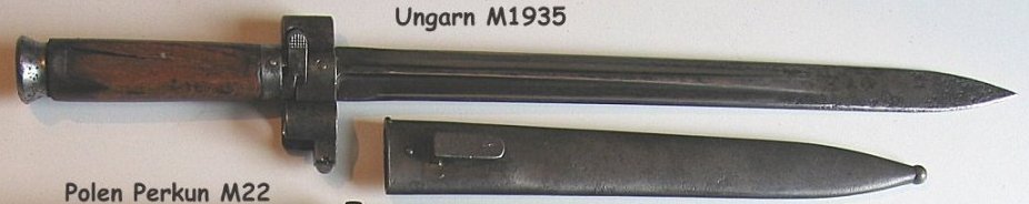 Ответ: Непонятная копанина Штык венгерский обр. 1935 г. кавалерийский для рядового состава к винтовкам системы Маннлихера обр. 1935 г. и обр. 1943 г. Отличается от штыка для рядового состава пехоты только наличием дополнительной мушки на прямоугольном высту¬пе кольца крестовины.