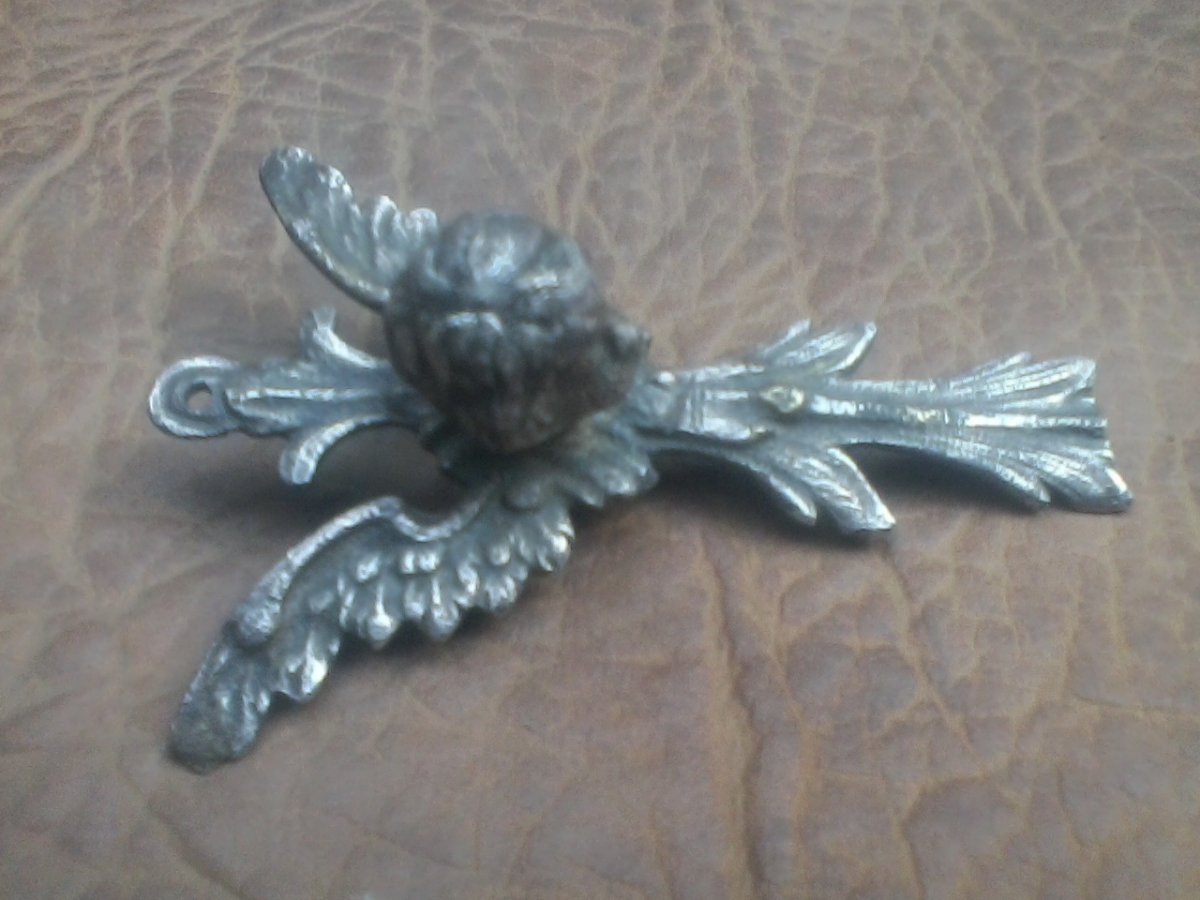Приветствую. Один из подвесов (обычно три "уха") симпатичной церковной лампадки рубежа 19\20 веков...Предположу что из серебра...Проходы аналогичных "ангелочков" есть на разных аукционах.