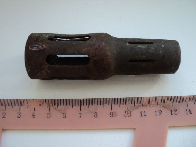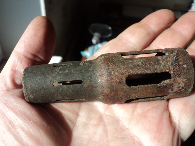 Вот такая деталь немного смахивающая на пламегаситель. С широкой стороны внутри резьба. Имеет клеймо с номером. Материал латунь. Что это может быть?