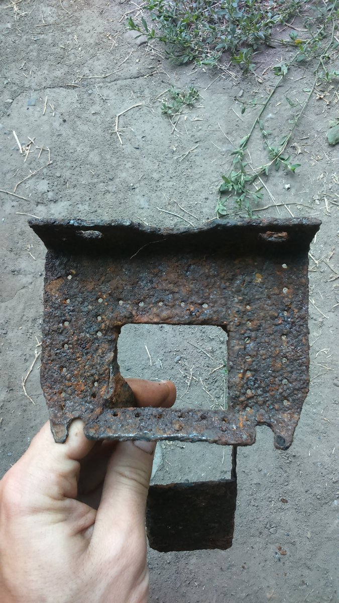 Доброго времени суток! при очередном посещении места ремонта оружия советскими воинами, на дне блина нашлась такая деталь. видно, что обшивалась кожей, один фрагмент кожи даже присутствует. Подскажите от чего может быть, размер паза внутри 55х45, размер прямоугольника 120х110 По сопутке запчасти с вм/км; свт 40; дп; максима; ппш