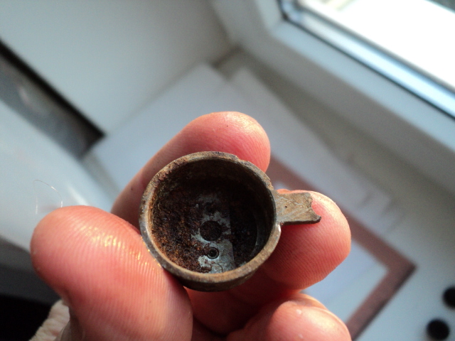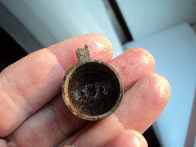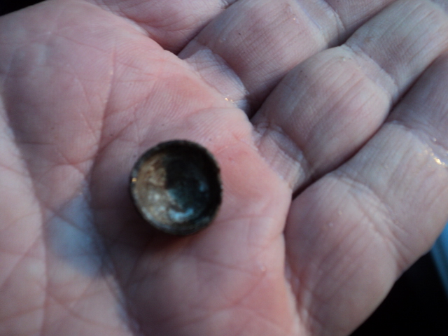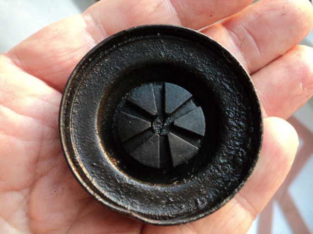 Третий предмет вообще непонятный. По центру отверстие, и в коричневый материал (не пойму что это керамика, металл или бакелит) вставлены две стальные (они магнитятся) втулки с маленькими отверстиями. Вообще не представляю от чего это может быть?