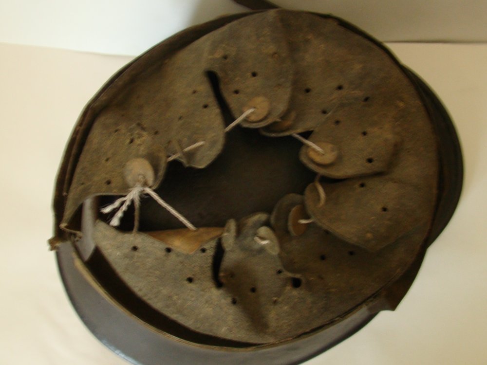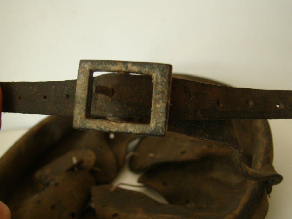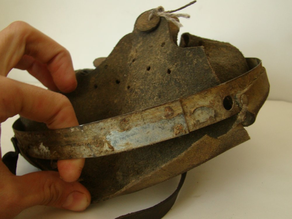 помогите, пожалуйста, идентифицировать подшлемник. странный обруч и крепление ремешка, но вроде не кустарное исполнение. такие вроде как встречались на шлемах люфтштуца. клейм и печатей нет