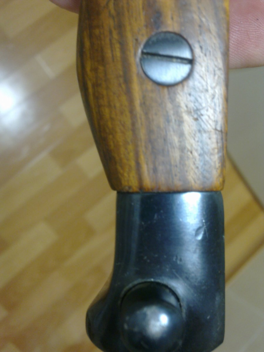 Здесь http://www.warrelics.eu/forum/edged-weapons/jungle-enfield-bayonet-324171-2/ Пост № 14: утверждают, что на оригинальных штыках к Jungle Carbine имеется отверстие рядом с кнопкой фиксатора, на копиях (репликах) его нет.