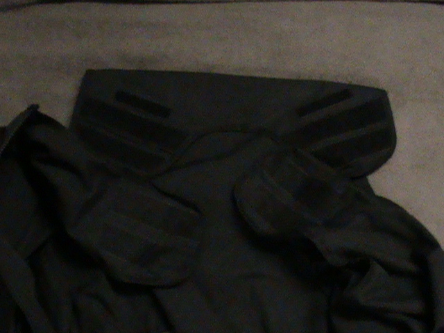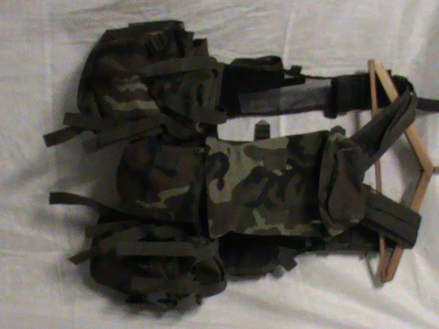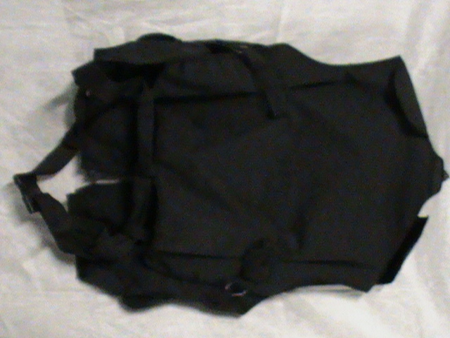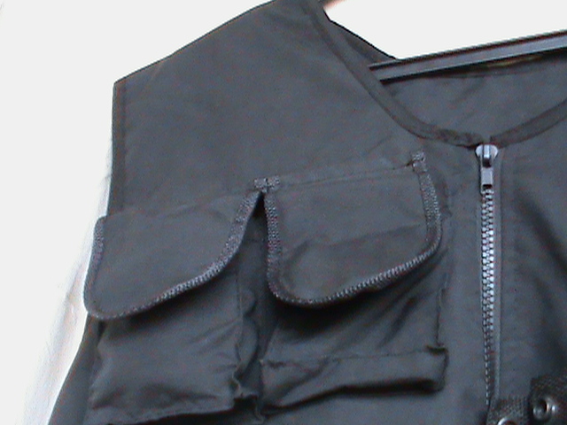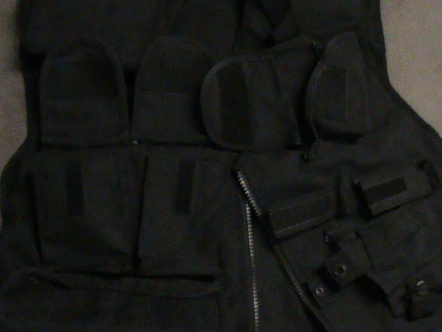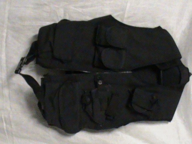 1.Разгрузочный жилет чёрного цвета. По внешнему виду новый. Без бирок и маркировок, производитель мне неизвестен. Регулировка размера по плечам на липучках как и кармашки. Боковые утяжки на ремешках. 250 гривен.
