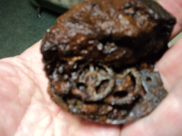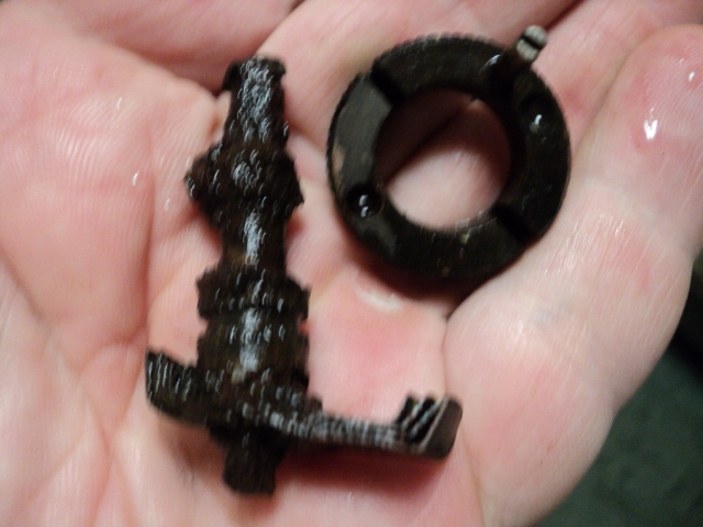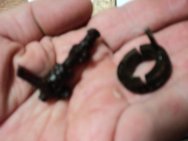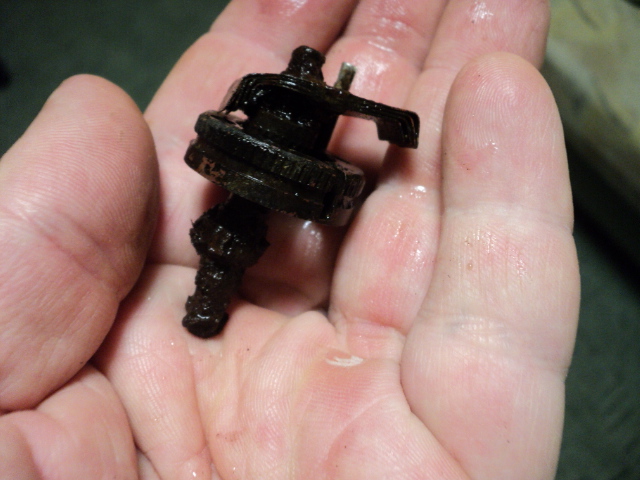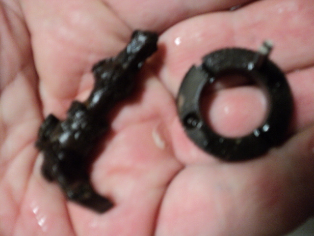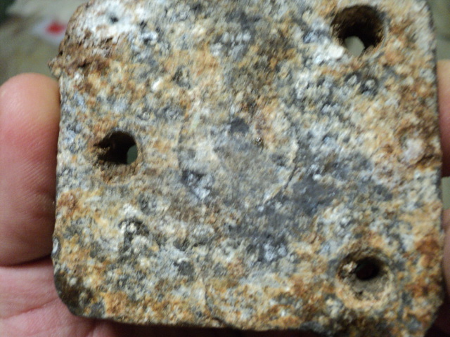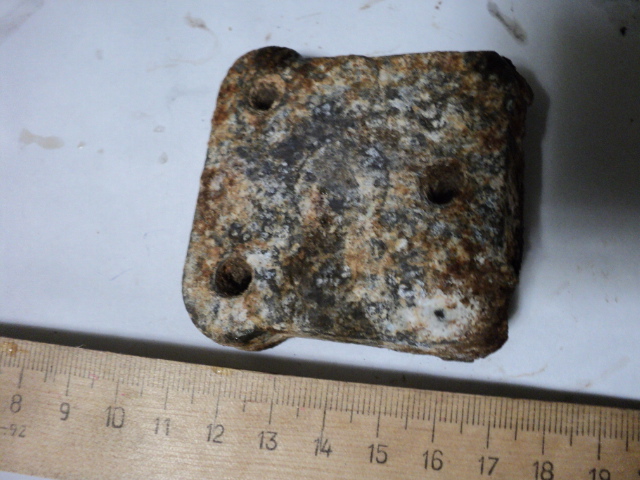 Сегодня поехал в лес в надежде найти жетон такой, как вчера http://reibert.info/attachments/dsc00701-jpg.2890252/. Но все находки - один хлам. Сначала назвонил кусок цинковой трубы с латунной крышкой. Отчего это? Затем алюминиевая деталь непонятно для чего? Состоит из двух частей, сверху латунная пластина. Все соединяется железным болтом. На этой хоть клеймо какое-то есть. Число 10 и еще что-то. Рядом нашел какие-то мелкие латунные две детали. По-видимому связанные с электричеством.