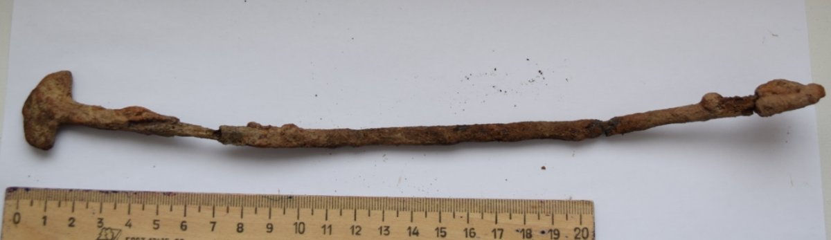 Доброго дня цікаво спитати шановне товариство, хто знаходив щось по скандінавам щодо такої подвескі. Що привертає особліву увагу в ціеї знахідці - є частина, яка 1в1 молот Тора, є також трохи дивна, тобто досить велика, але ж проушина. Но що якось сбиває з пантеліку - між німі 4-х гранний прут ну дуже великої довжини. Загальна довжина (тобто разом з проушиної та молотом) десь біля 29 см. Мені доводилось бачити фото дуже довгих зразків, але ж не більш 20 см. Сопутка всіляке пізне середньовіччя 14-16. Цікаво якщо хтось бачив щось подібне. На першому фото знахідка крайня зліва, інші два фото молотів для порівняння