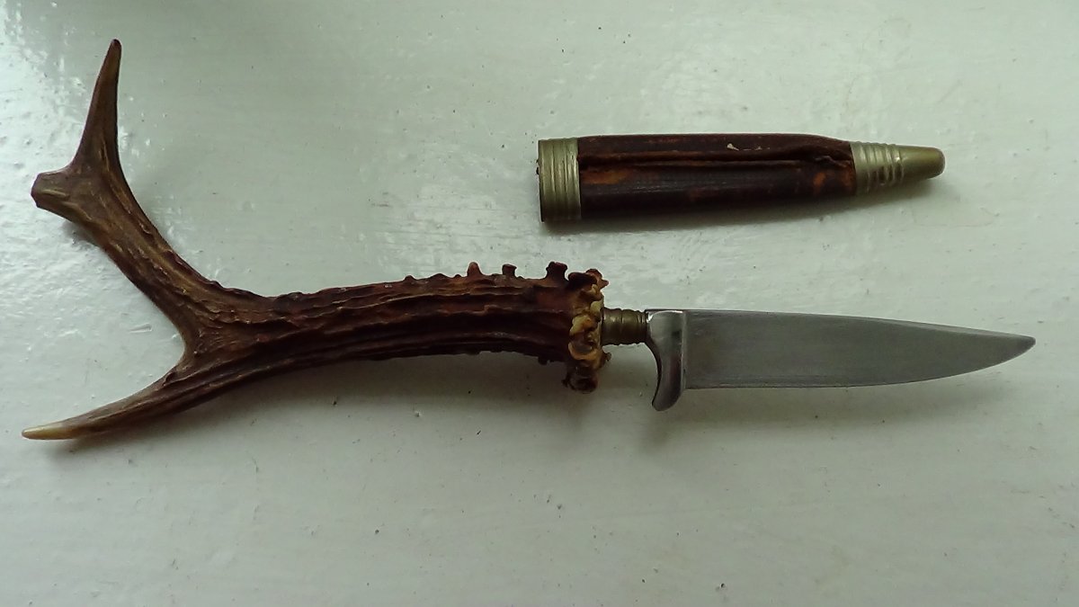рукоять-рог. общая длинна-25см клинок-9,5см обух-4мм. 650гр.