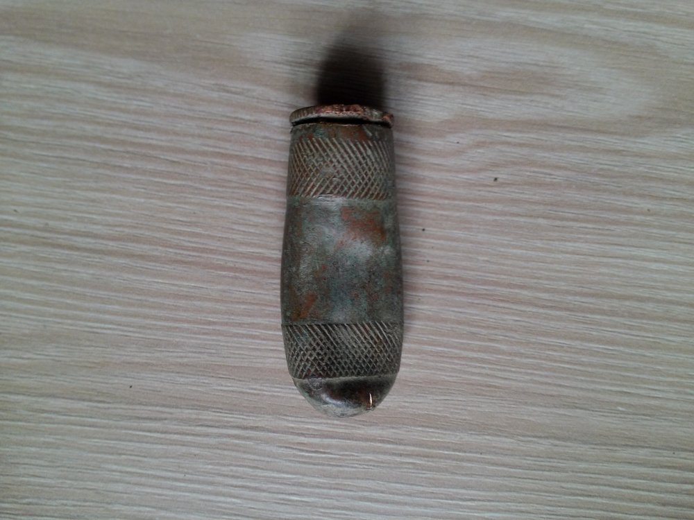 Сегодня покопал пару часиков перед работой..фискарь-злюка не пожалел значёк,воспользовавшись промахом глаза-алмаза!)))Что за гильза? 19 16 год производства? Зелёная пробка первый раз попалась..обычно стального цвета попадались...