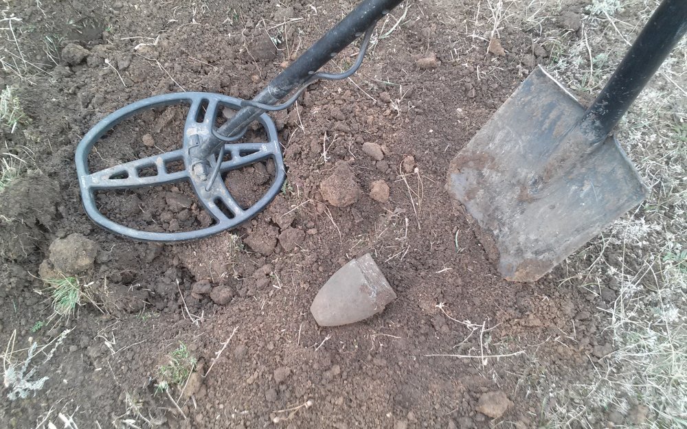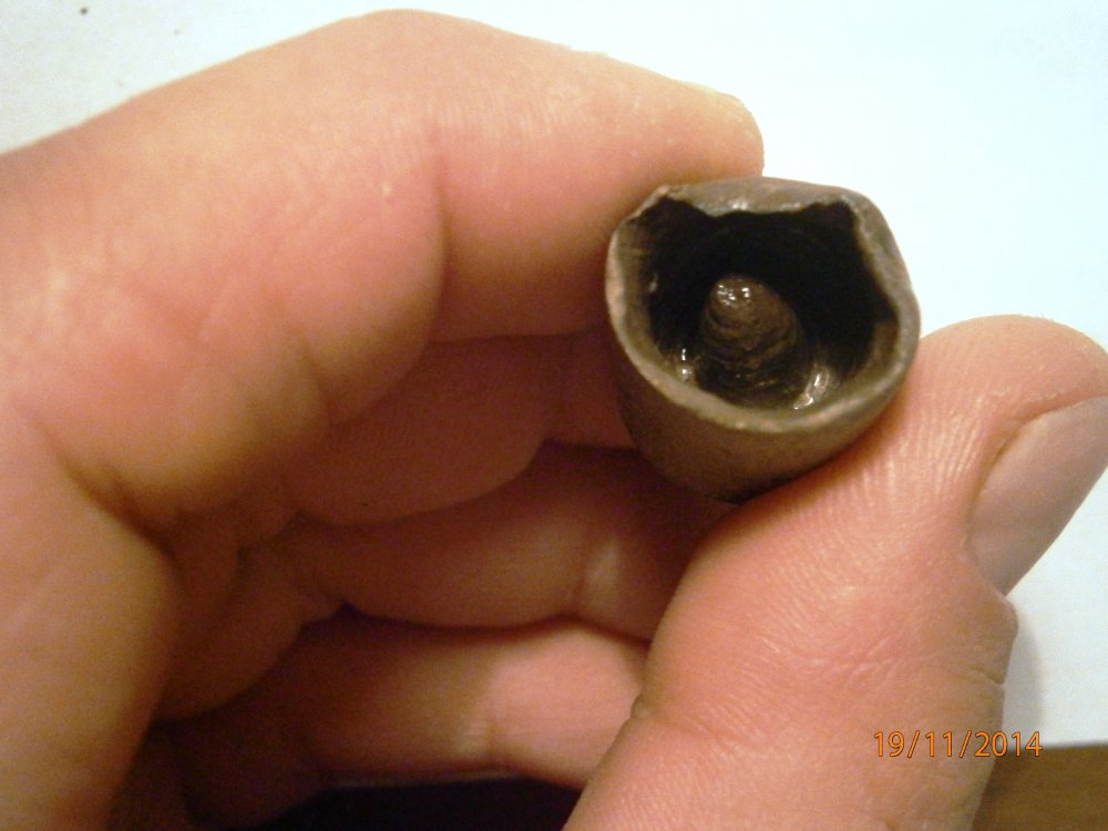 И я сегодня сумел вырваться до дождя на пару часиков добивать выбитое место. Подскажите кто знает что это такое. На пулю похоже, но не видно насечек.