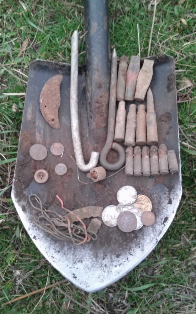 Мы сегодня опять наведались в Марьину рощу,хабарок скуден,конечно.. но зато нашли наследие коллег,прогуливающихся в тех местах с глубинником..Ямка не закопана, сорокапятки разбросаны..видимо ждали,когда грибники их аккуратно в костёр сложат..((