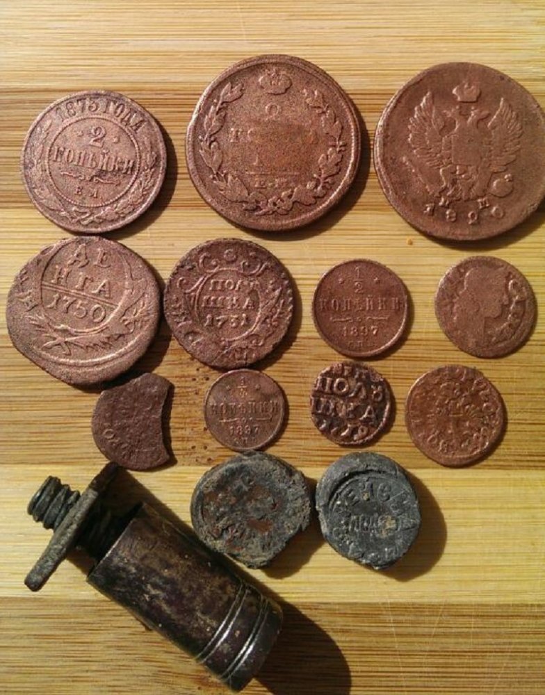 На последней фотке - налоговый жетончик на право извозчичьей деятельности, имеет спрос у коллекционеров. На лопате обломки ленточки тоже могут быть или с фуражки полиции или наградной из армии.