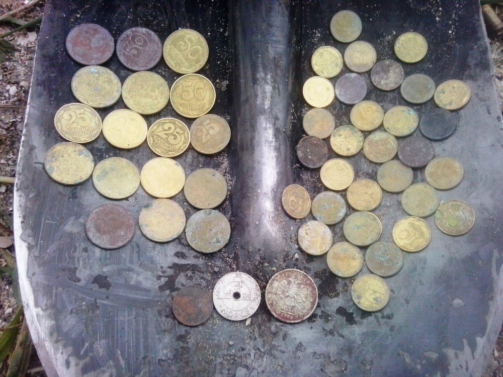 А мы сегодня проскочили на мои любимые огороды,правда находок не густо,но все приятные! Мой уловчик: Из интересного у ребят: А под конец решили всё-таки посмотреть,что же за глубокий сигнал я назвонил ещё в первый приезд на то место.Им оказались чугунные болванки в колличестве больше 30 штук,общим весом в 280 килограммов.И поездочку отбили и по пару копеек заработали..))