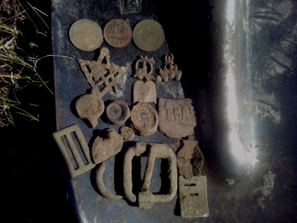 Я там вскрыл два постоялых двора нашел много квадратных гвоздей и одну подкову. По войне попадались одни осколки от снарядов.Покопать вместе согласен но только осенью.
