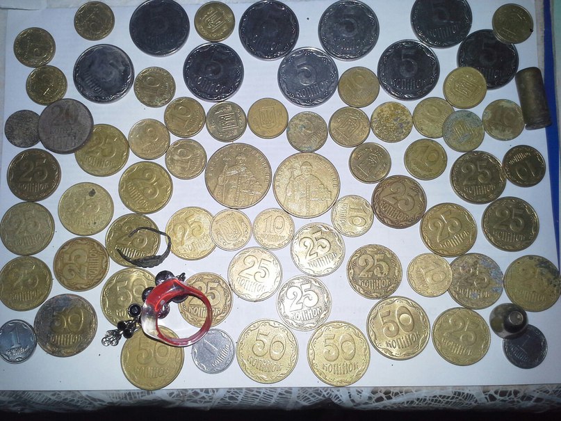 Сегодня утром прогулялся по пляжику пару часиков .результат ходячки трошки и мелкие цацки.рыжиков не было к сожалению.) и на прошлой недельке порадовало поле вот такой монеткой)