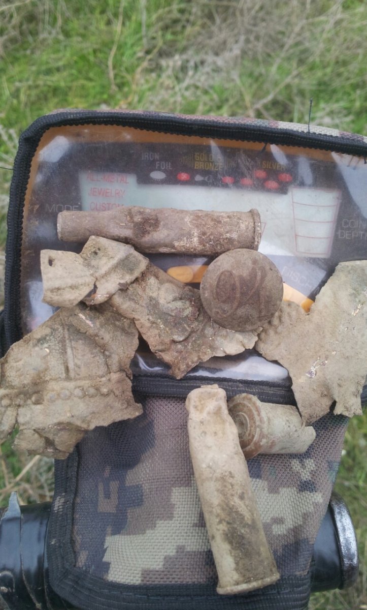 Поехали сегодня на поле чудес..пикали чуть больше двух часов..там уже просто футбольное поле,всё вытоптано,но между ямок пару правильных сигналов всё-таки удалось выцепить..))) Одна компания камрадов николаевских на микроавтобусе приезжала..вот это я понимаю подход!)))
