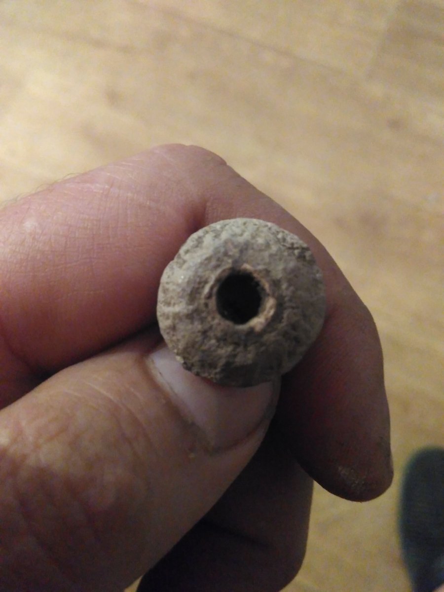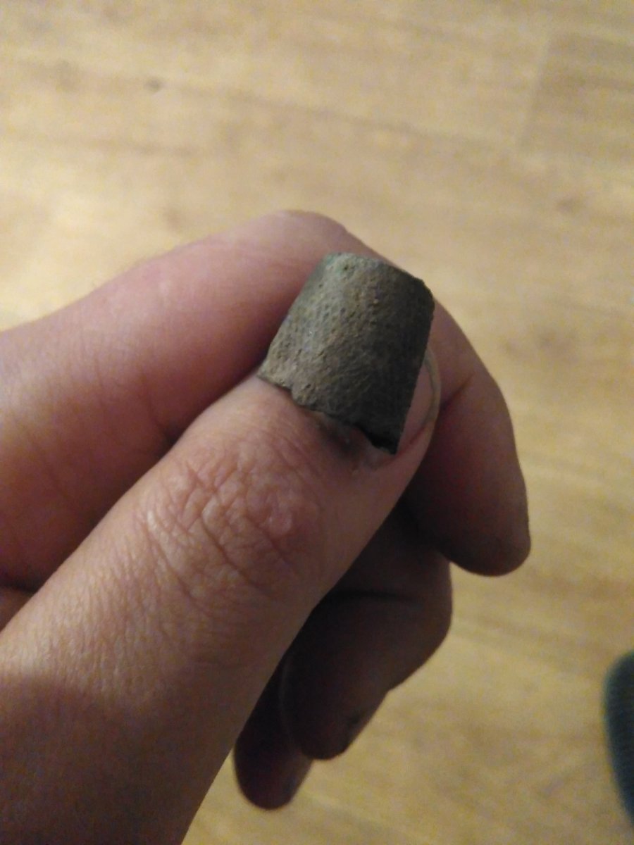 Воистину воскрес! Сегодня ездили в Ташкентский лес. Между шашлыком и пасочкой пробегал часок в поле в районе бывшего хутора. Нашел наперсток бронзовый И первое свое пряслице Сначала думал, что бронзовое. Чуть ковырнул изнутри - не похоже. Мягкий материал. Может свинец? ВДИ Дуси было 78-80.