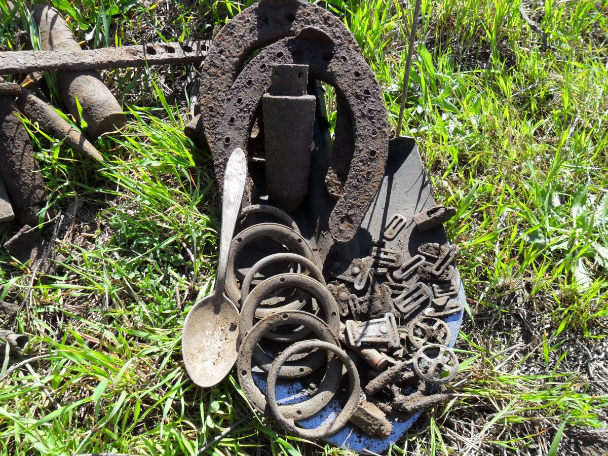 Над колечком пришлось задуматься. Сначала подумал что какая-то запчасти от сх техники, но потом разглядел явно штучную работу. По сигналу ВДИ было очень близко к тем же серебряным монетам, но при расчистке проглядывает жёлтый металл- значит все же бронза. Наверно олова в ней много.