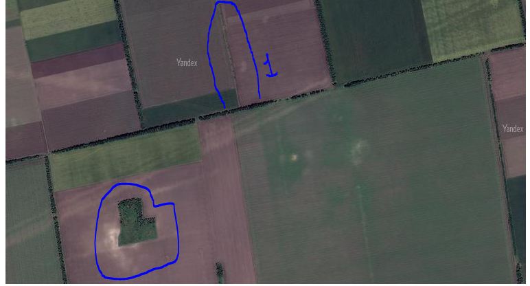 Доброго времени суток . может откликниться тот камрад который советовал покопать в этом месте на фото обозначенно цифрой 1 , камрад утверждал что там были ганс позиции, проходил вдоль и впоперёк но не то что настрела не нашел даже осколков и тех нет , на том обьекте что по кругу маркером обнесён там попдался настрел .может у кого есть информация по этому району.