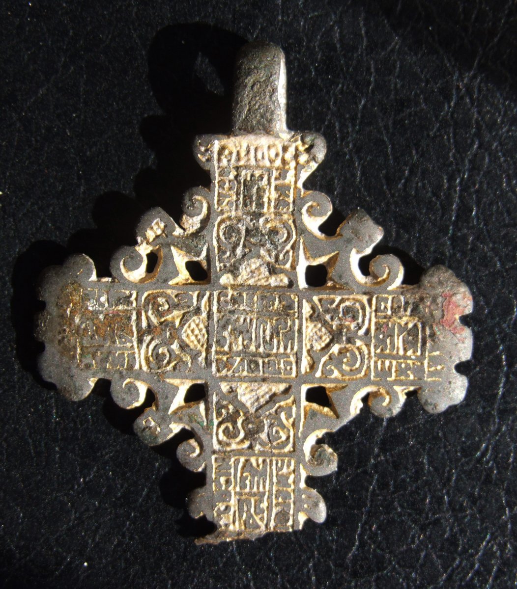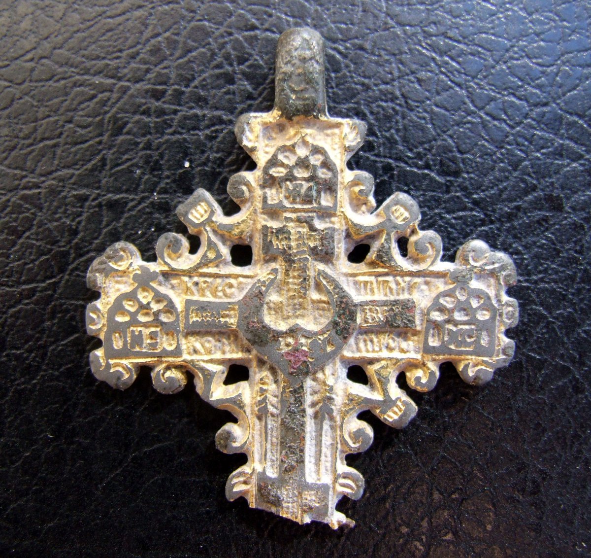 Попался мне вот такой крестик Тип - штурвал, он же известен как казацкий. Лежал месяца два, все не решался разогнуть. Но пришло его время. Буду греть горелкой, охлаждать в спирте и разгибать потихоньку. Результат покажу.