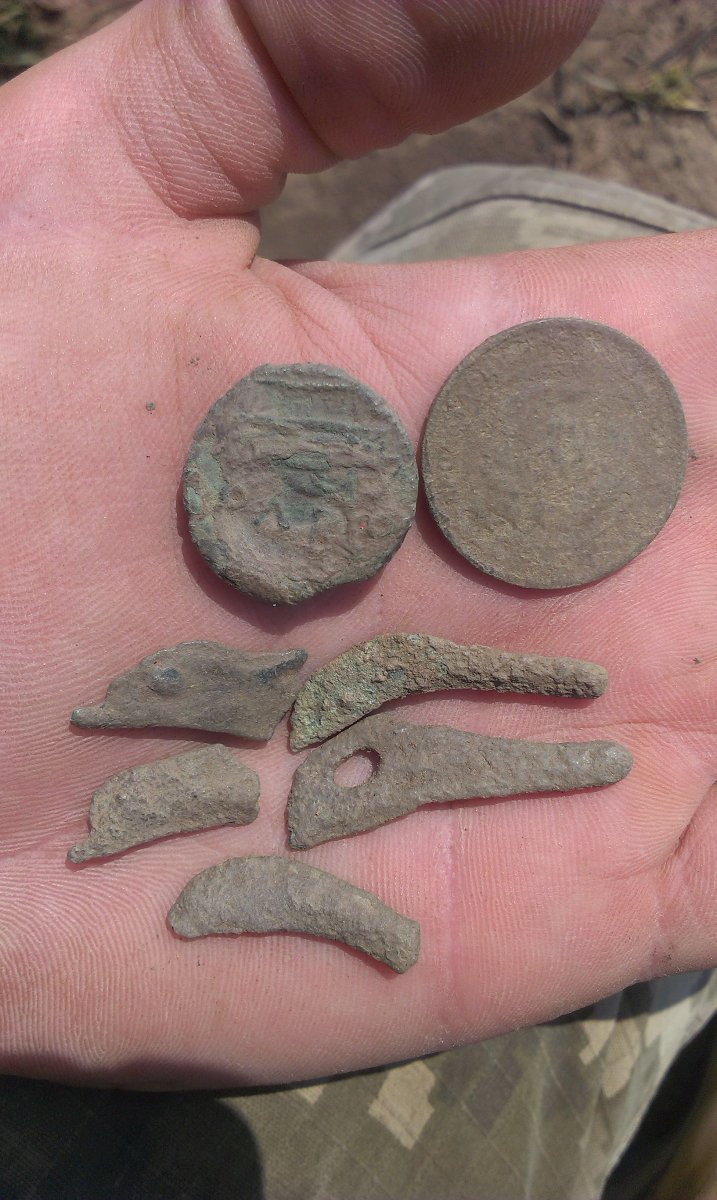 Шурфили заезжие, но не конкретно на том "квадрате". По находкам у них вроде лепнина была, но это не точно, особо не спрашивал. Подъехали, пообщались и разошлись каждый своей дорогой. На "квадрате" ничего конкретного не находил: простую скифскую круглую бляшку (правда в серебре, но немного поцелованную плугом) и бензозажигалку на войну. Ничего "римского" там не замечал и не слышал от других.