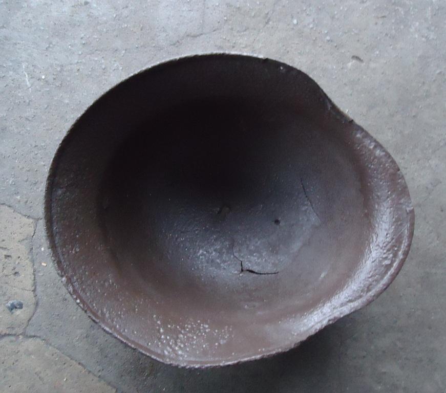 Вона не осколком пробита. Там держак хтось кріпив. Туалет чистити , чи зерно з діжки черпати. Для того і люверси з отворами під кламера заклепали.
