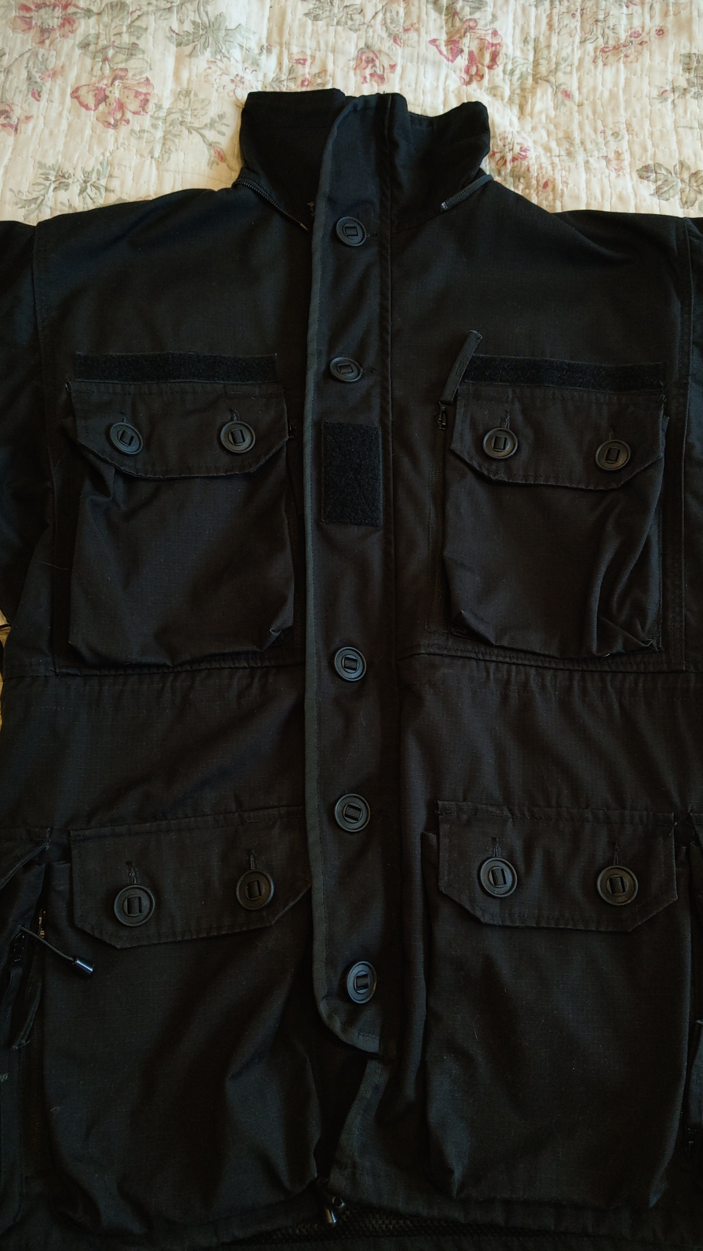 Стан ідеальний. Розмір по бірці 48-50 але дивись заміри. Колір чорний. Плечі 55, груди 70, рукав 62, спина 83, низ 60. Затяжки на пояс і на низ. Куча кішень як накладних так і на молнії. Тканина ріп-стоп. Парка верхній слой,якщо просто на светр то підійде і на наш 52. Ціна 950грн. На парці на задній кишені нехватає одного гудзика.Є пмтання, пиши.